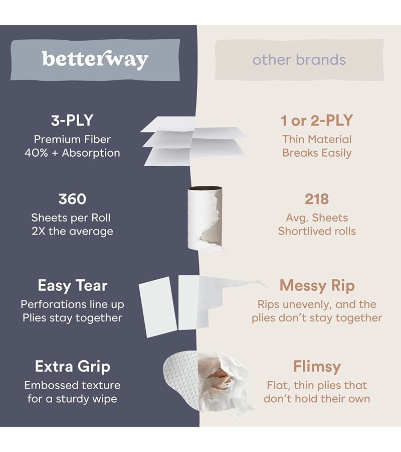 ✅ THE SOFTEST BAMBOO TP w/ 100 DAY RISK-FREE MONEY BACK GUARANTEE: How soft is it? As soft as bamboo TP gets! In a blind test of top selling eco friendly TP brands. 96% of people chose Betterway as their #1 FAVORITE! We are so confident you’ll love it that you get 100 days to return it hassle free if you’re not completely satisfied.